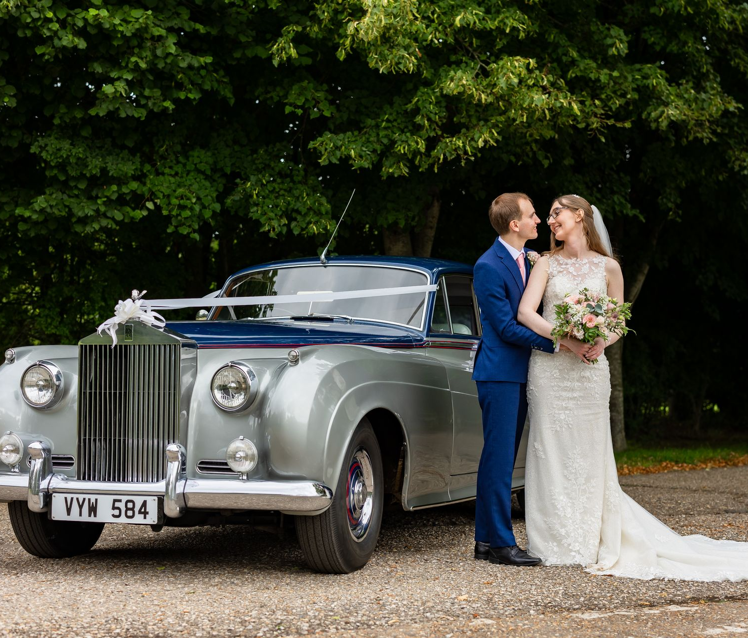 Rebecca & Alex travelled in style to Applewood Hall in a vintage Rolls Royce wedding car.