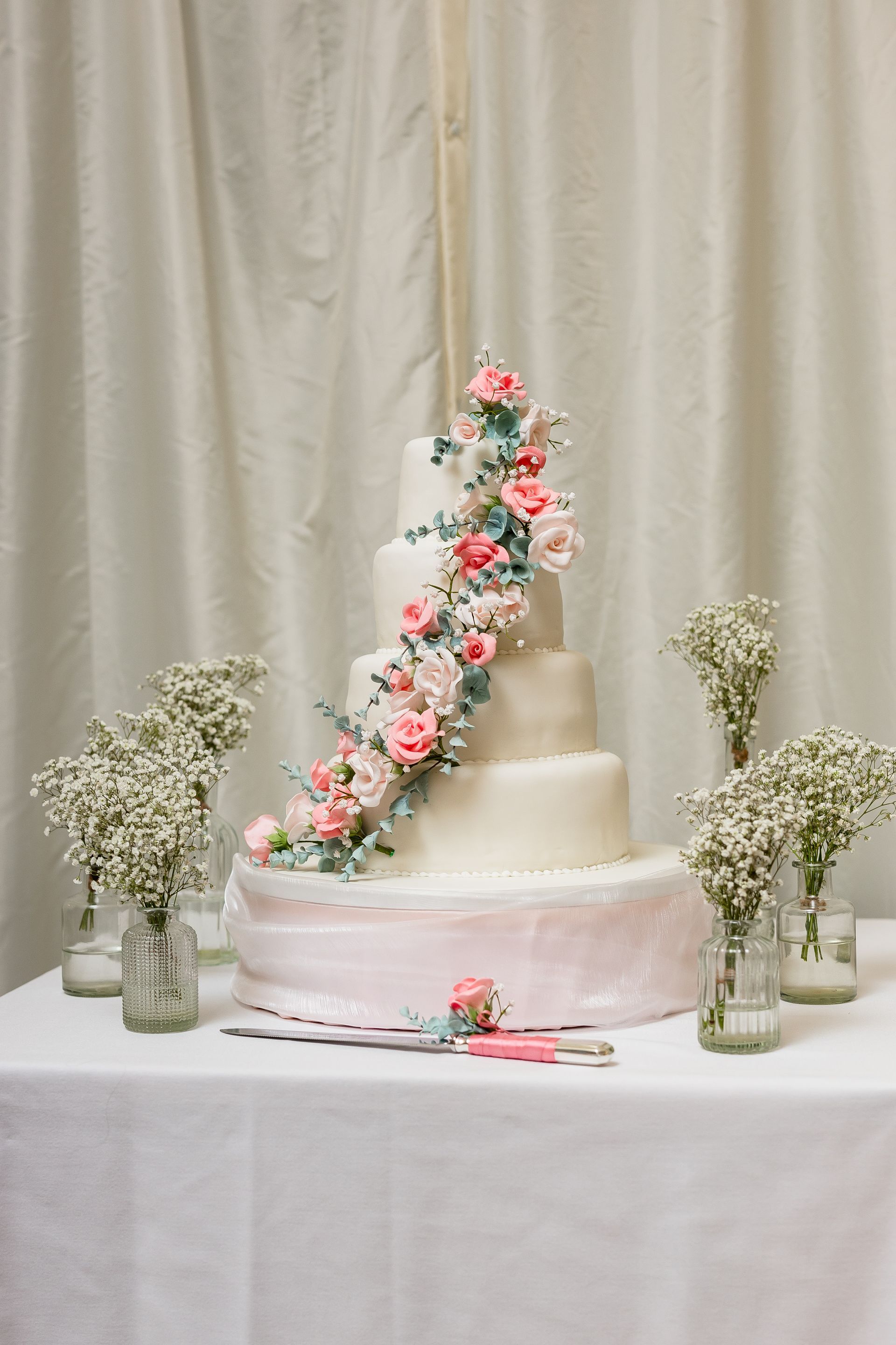 The cake was made by the mother of the bride and included perfectly matched sugar paste flowers to the bride's bouquet!