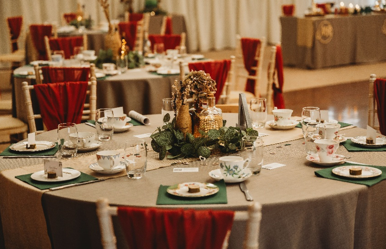 FALL ing in love – How to plan that perfect Autumn wedding. The air turns crisp, but the surroundings are warm in colour. Autumn sets the scene like no other season can, and there’s something really special about saying ‘I do’ in the heart of it all. Choosing a wedding date in Autumn means you can embrace bold or burnt orange tones, mustard yellow, deep burgundy or olive green…a colour palette that matches the rich, earthy vibes the season has to offer. Use nature as your inspiration! Think rustic wooden logs, textured table linens, hessian chair sashes and of course, pumpkins & pinecones! Bring that cosy, warm and homely feel to your wedding. Being a marquee lined venue in the countryside, the Autumn themes can really come to life at Applewood Hall! Add in extra details like fairy lights, faux candles and lanterns, alongside seasonal flowers and leafy foliage to emphasize this cosier season. If you are looking at doing something a bit different, we have seen wedding days that incorporate a couples’ love of Halloween, day of the dead, Harry Potter, horror movies or Vikings. With quirky additions that include, skulls & skeletons, banquet style tables and floating candles, iconic villains on biscuits, and axes used to cut the cake! Summer is often the most popular time of year to get married as many expect the weather to be better. However, being in England and through experience, there really is no guarantee with the weather at any time of year (We have held peak summer weddings where it has rained all day!) You could find there is more availability for venues and suppliers when you look at an Autumn date, and you could be just as lucky if your day does bring sunshine (or at least have the rain hold off). With ideal spots around Applewood Hall, you can take a stroll as newlyweds and find some perfect autumnal backdrops for your photographer to get your couple shots. Don’t forget about golden hour and capturing that seasonal magic! With the bridal gowns often taking the spotlight, it’s a refreshing change when the cooler months creep in, as the attire for the menswear does change… With velvet black blazers and floral ties, three-piece tweed and bowties, to deep burgundy brown suits with boots. We love to see it! Some final points: - Keep it cosy. Have some blankets available for your guests, should the weather turn colder. - Folk or ceilidh band? We have seen these becoming popular for autumnal weddings. - It’s bonfire season ! What about having some evening sparkler photos? - Consider timings . Autumn days mean less daylight, adjust your photo schedule accordingly.